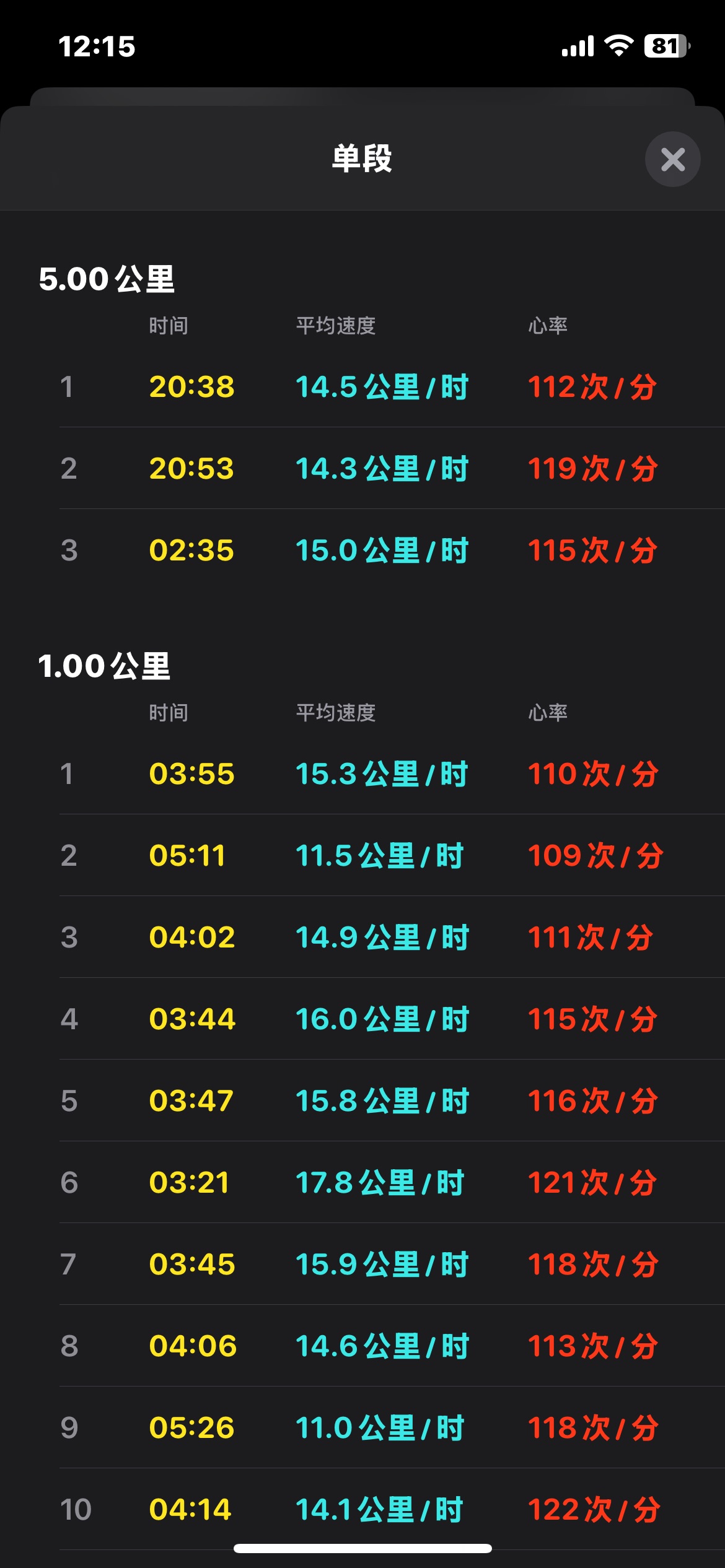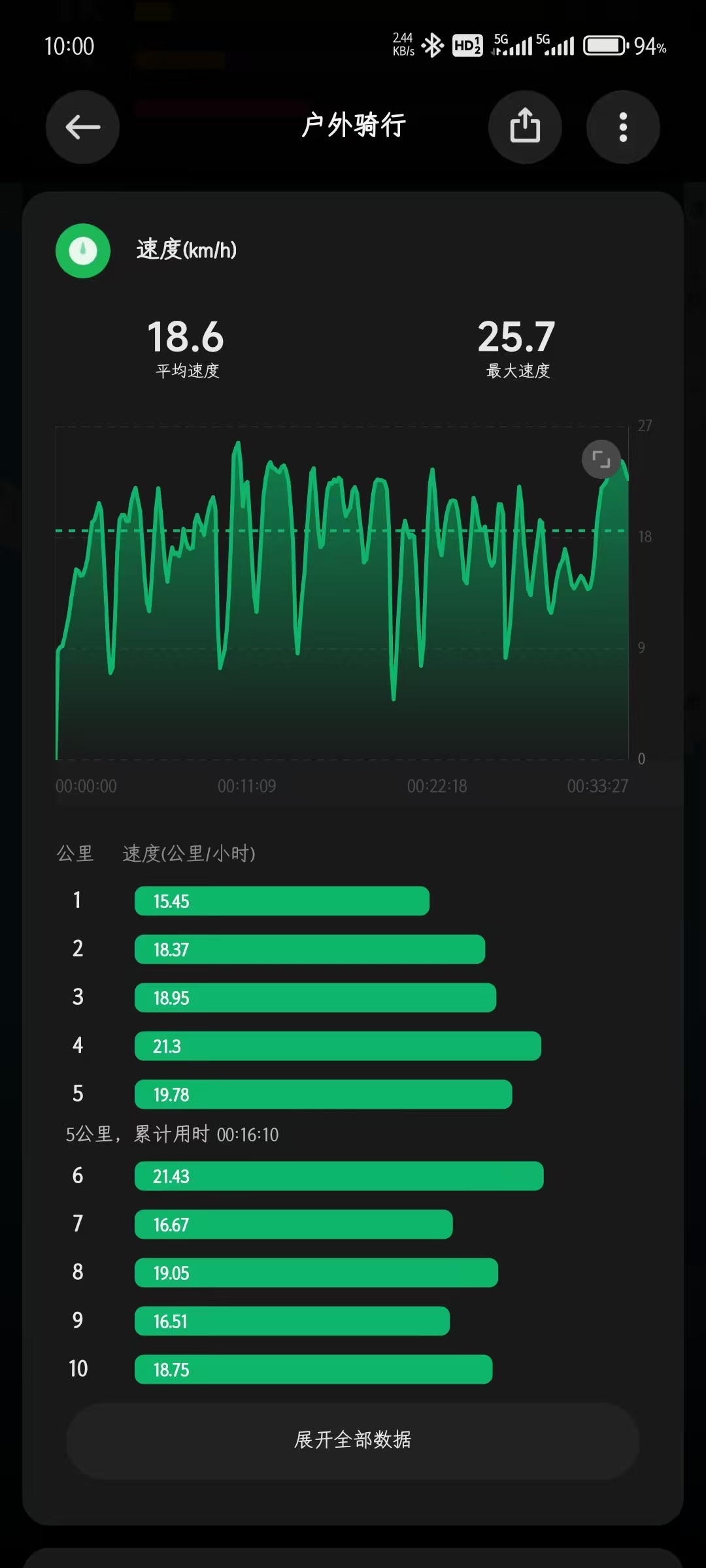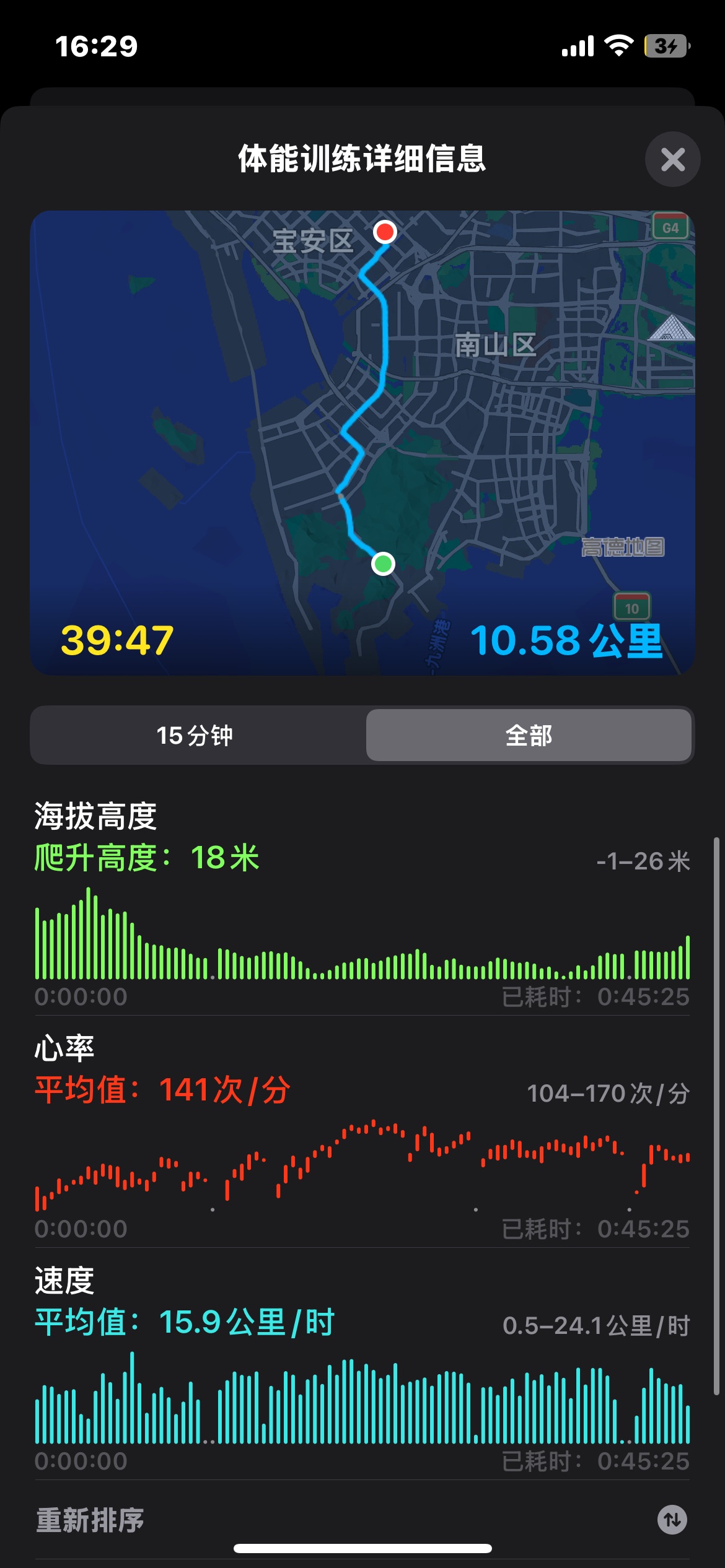 最近一段时间最快的一次了,均速18.6km/h,也算共享单车个人PB了😂。手表和手环两个平台记录的也差不多。